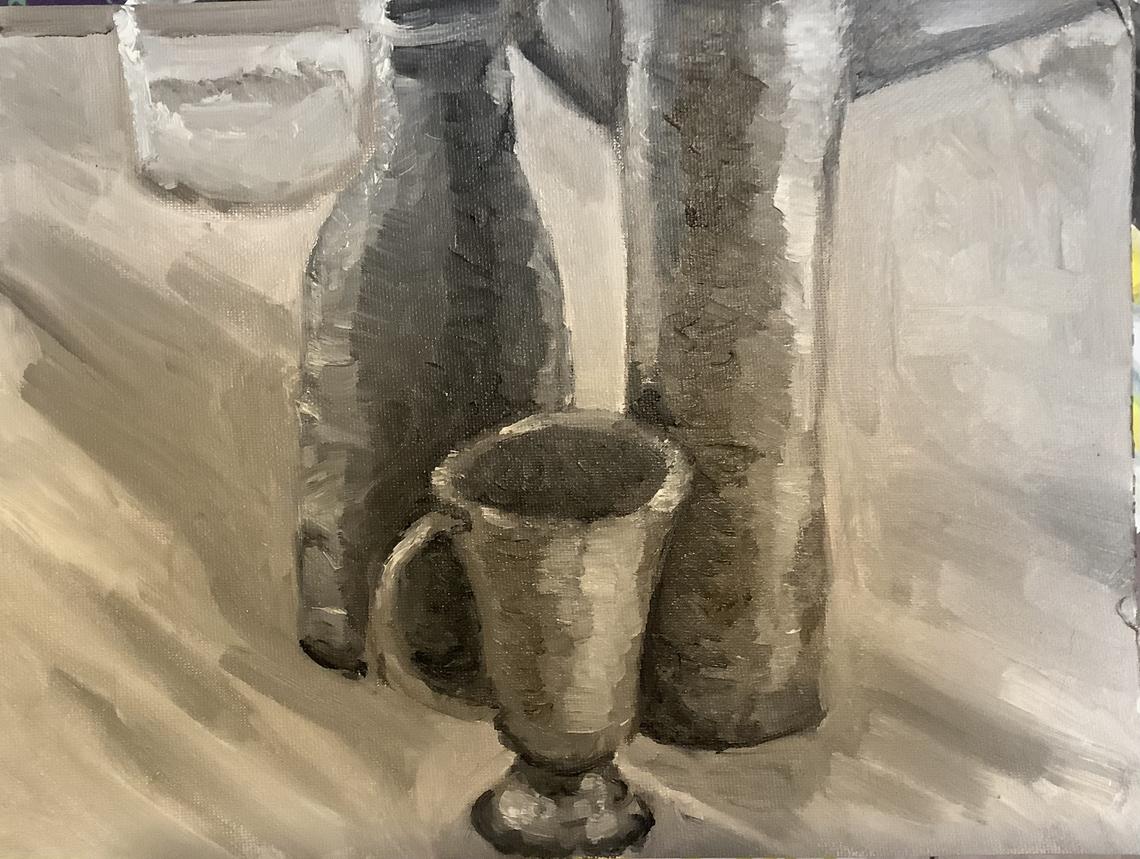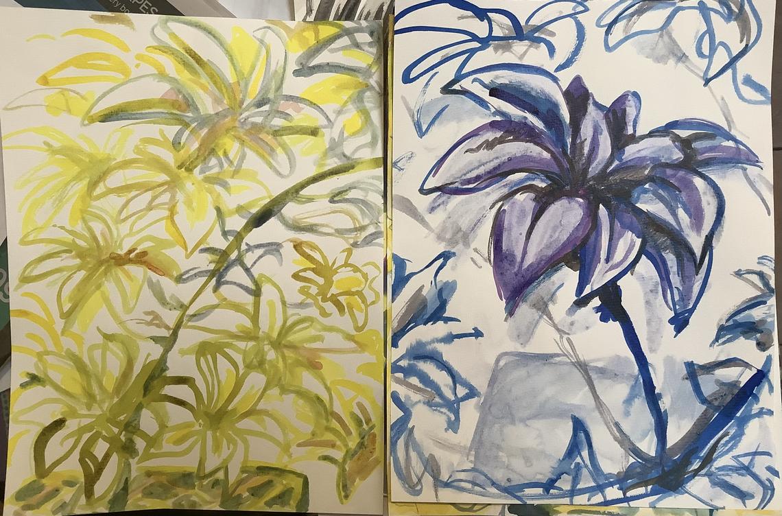 Various 2 hr painting exercises including gouache, oil and acrylic paint