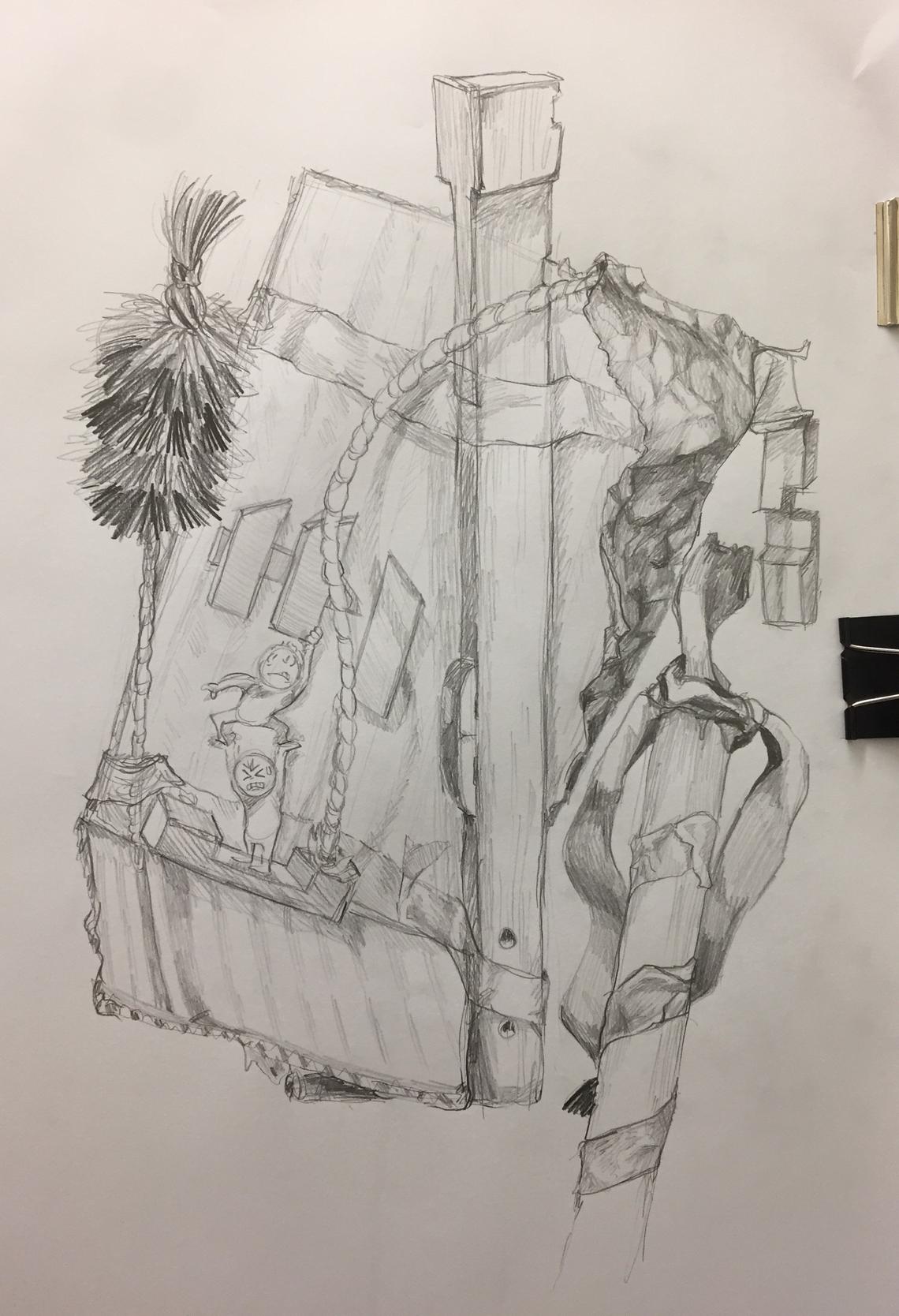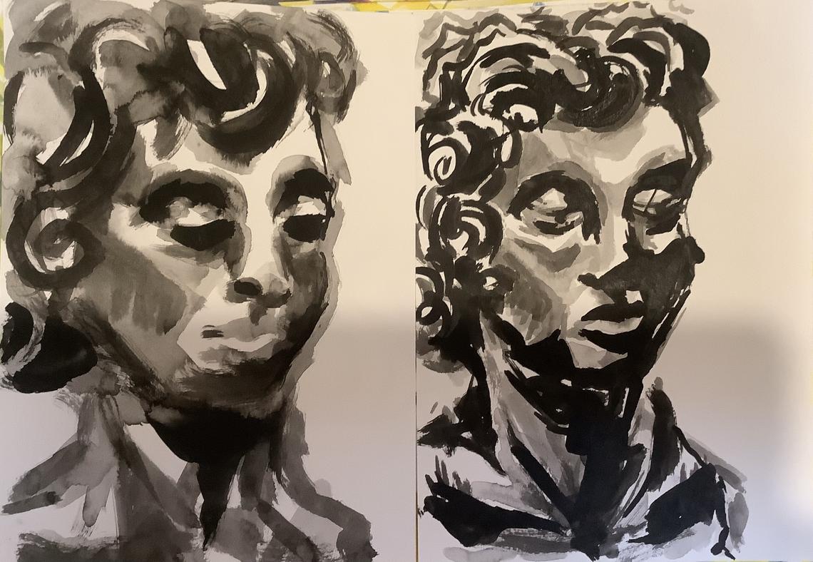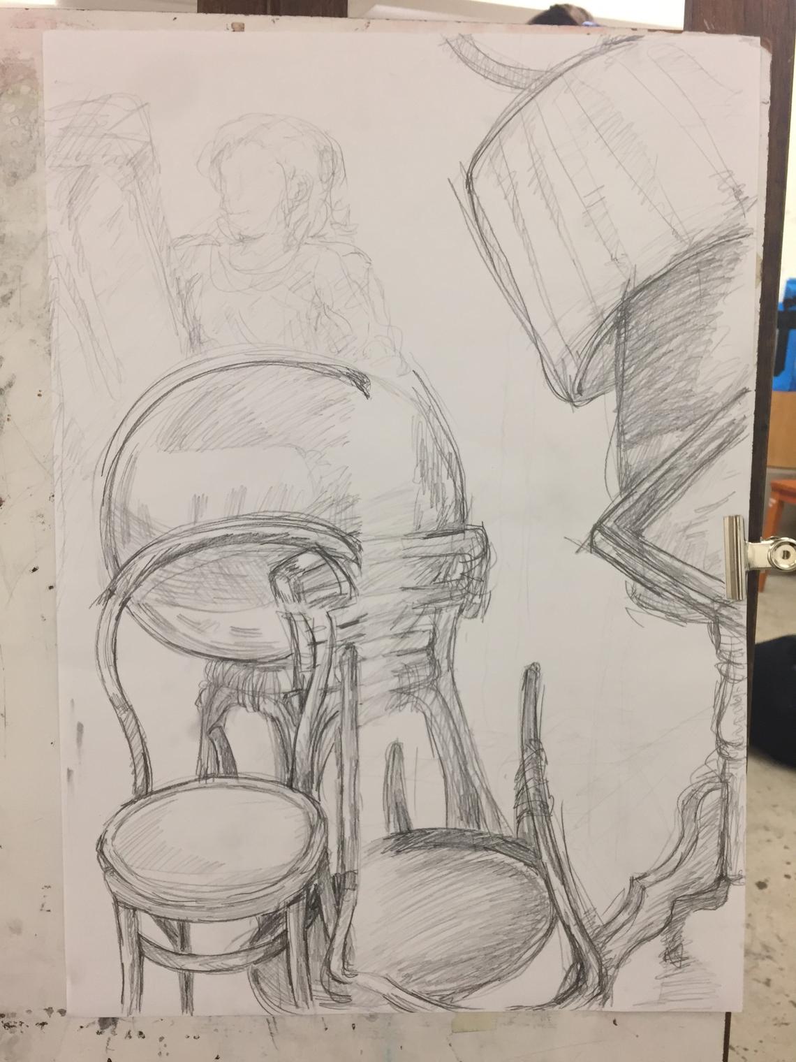 2-hour sketch, graphite pencil                                                                                          2-hour exercise, paper split into quarters and each done separately